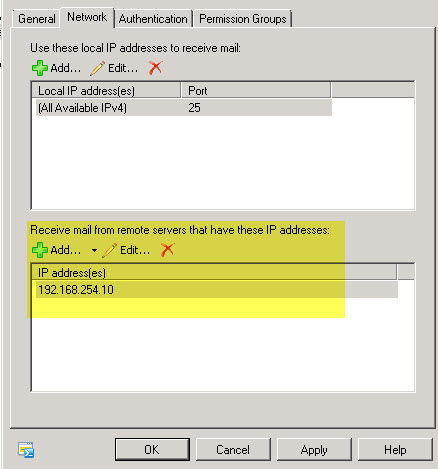 * TIP * Do you see the 421 status in your SMTP protocol log? That's usually where the receive connector sends errors when the IP address isn't allowed to use the receive connector.
