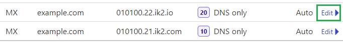 Your domain probably has MX records setup already, you can click Edit one of your existing MX records to replace them with our MX servers.