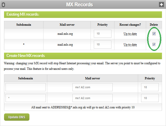 Under MX Records you need to delete the current MX records and add our MX servers according this list: